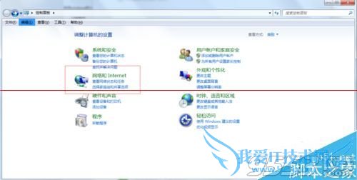 2、进入控制面板界面,点击下方列表中的【网络和Internet】选项