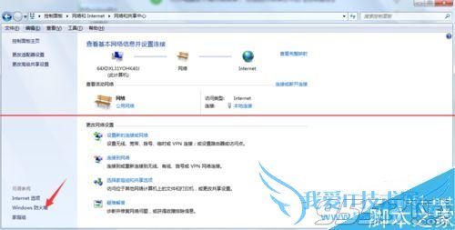 4、进入网络属性界面,点击右下角的【windows防火墙】选项
