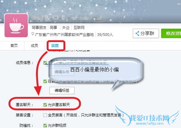 安装完成后,随便进入一个群,点击群设置,找到匿名聊天选项,勾选允许匿名聊天。