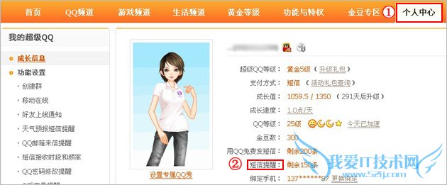 请登录网站=》选择个人中心=》短信提醒: