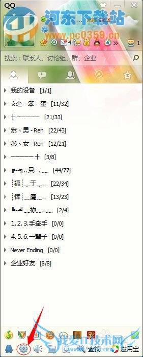 1.登录QQ,打开QQ面板,在QQ面板最下方工具栏中找到设置按钮,点击设置进入QQ设置中心。