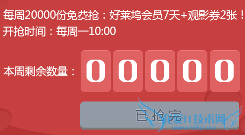 每周一10:00免费抢好莱坞会员7天+观影券2张!