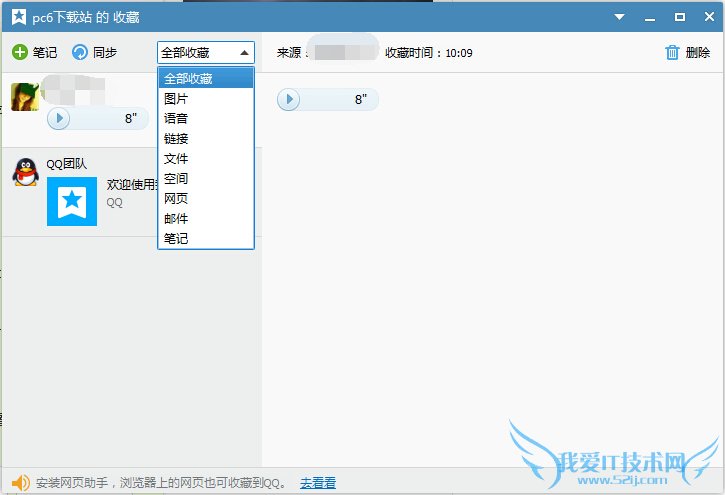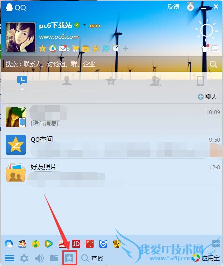 1.在pc6下载并安装最新版qq(因为最新版的qq才有收藏功能),然后在主界面最下面找到收藏图标(在查找左边)
