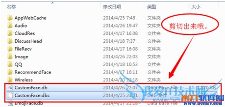 然后,我们在个人文件夹中找到“customface.db”和“customface.dbc”两个文件,将它们进行剪切处理,放到一个自己方便找的地方。