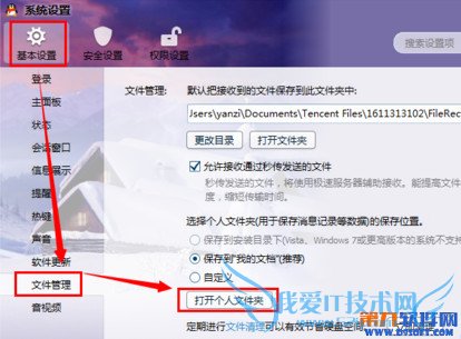 依次选择“基本设置”-“文件管理”-“打开个人文件夹”,至此,打开个人文件夹。