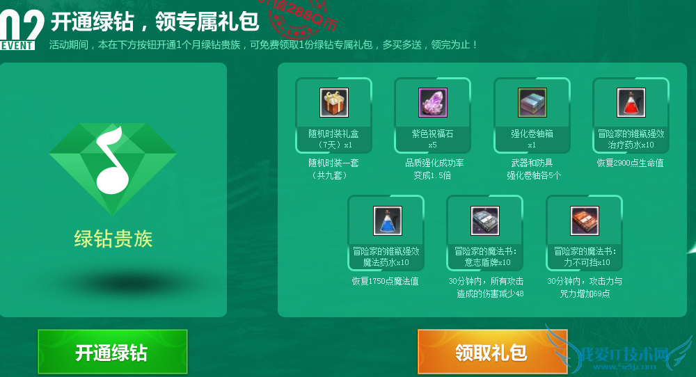 开通绿钻,即可在活动页面领取上古世纪专属礼包