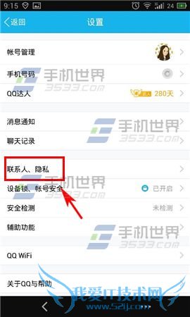 2)点击【联系人、隐私】,接着点击【动态权限设置】。(如下图)