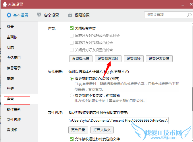 2、切换到声音菜单项界面,点击设置动态炫铃按钮,进入动态炫铃设置界面。