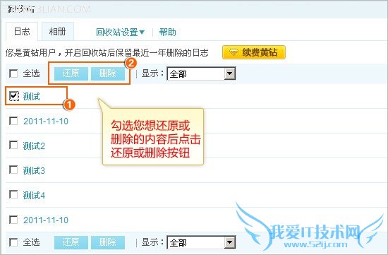 5、日志从回收站还原后,日志的最近访不会恢复;日志最近访客是独立于日志内容之外的一个功能,无法恢复;