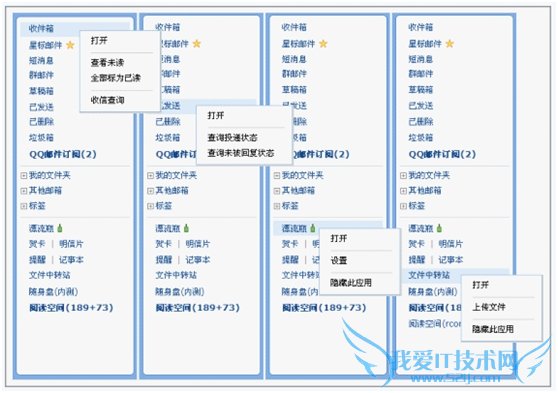 如图所示,非常清晰。邮箱界面中左侧的各个栏目的右键功能都被加入了相关的常用操作,既有关于收件箱标记的,也有已发送栏中的投递状态查询等等,这些快捷功能让您无需同时打开多个邮件网页,直接右键操作,省时又省力。