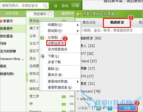 方法一:QQ音乐客户端给QQ好友分享歌曲