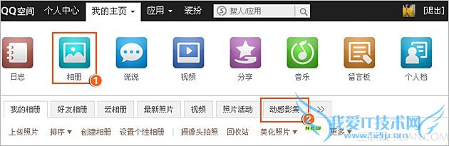 1、登录您的QQ空间,点击导航上的“相册”按钮,进入动感影集的页面;