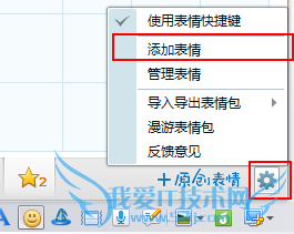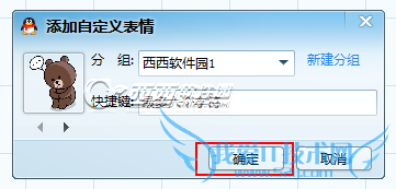 2、然后选择这个新添加的分组,点击右下角的设置按钮选择添加表情。