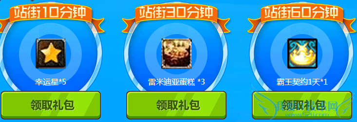 活动期间内,玩家每天在游戏内累计站街对应时长,可在本页面领取对应站街礼包一份。