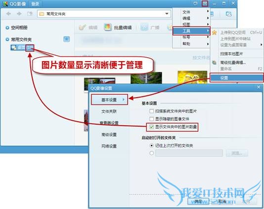 用户还可以在“QQ影像设置”-“基本设置”开启“显示文件夹中的数量”,QQ影像会在文件夹树中标注显示图片的数量,直观明了,结合常用文件夹功能,更便于图片管理。(图2)