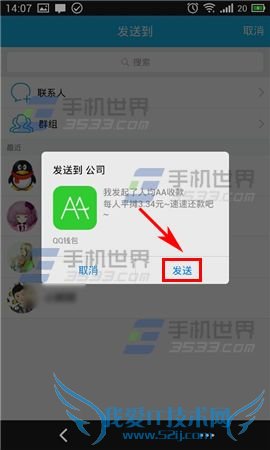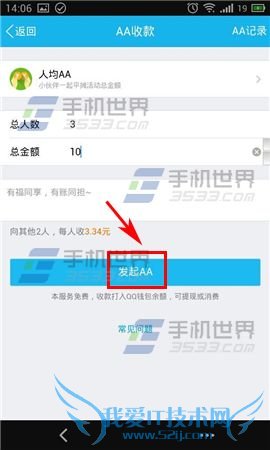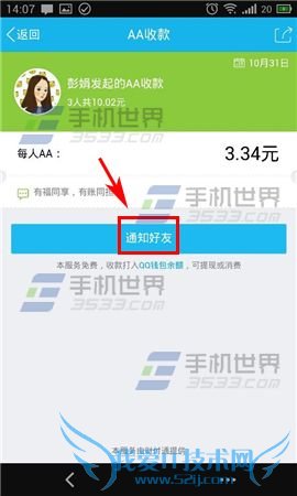 4)输入收款信息后点击【发起AA】,接着点击【通知好友】。(如下图)