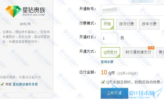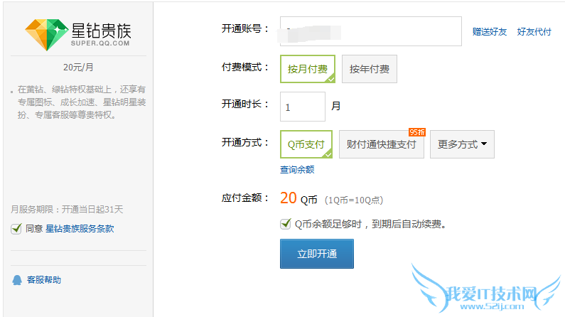 小编并没有开通黄钻和绿钻业务,所以在选择按月付费的时候,显示20元/月;