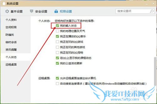 接着在“个人状态”设置信息里,我们可以看到一个“我的输入状态”选项,我们把该选项前方方框里的勾去掉。