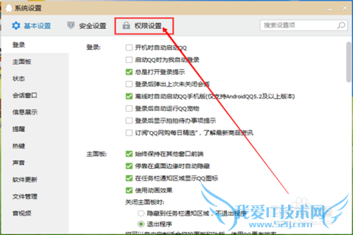 单击“打开系统设置”后就出现系统设置窗口,然后单击最顶层右边的“权限设置”。