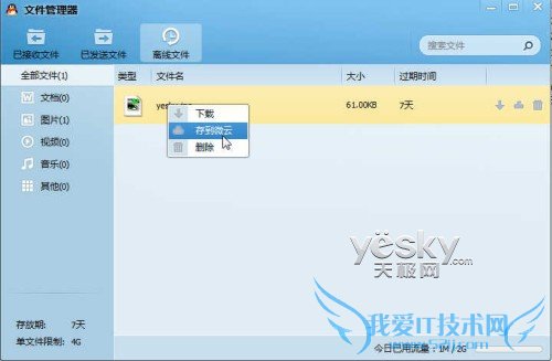 图示:点击“到云端查看”可以打开QQ文件管理器中可以查看离线文件记录