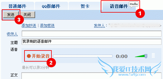 使用语音邮件非常简单,无需特别配置,也不用安装特殊软件,您只需要一个麦克风就可以完成整个录制了。