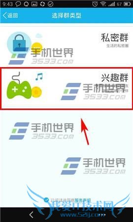 2)打开小分栏后点击【创建群组】。接着选择点击【兴趣群】。(如下图)