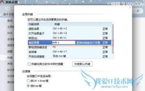 2、在基本设置下点击热键进行设置热键,如下图所示: