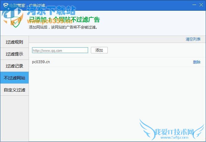 用户开启过滤记录后,所过滤网站广告信息将在此记录,适合那些需要查看过滤广告信息的用户。