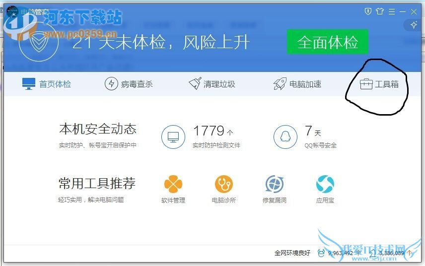 2.运行QQ电脑管家,点击主界面中的工具箱