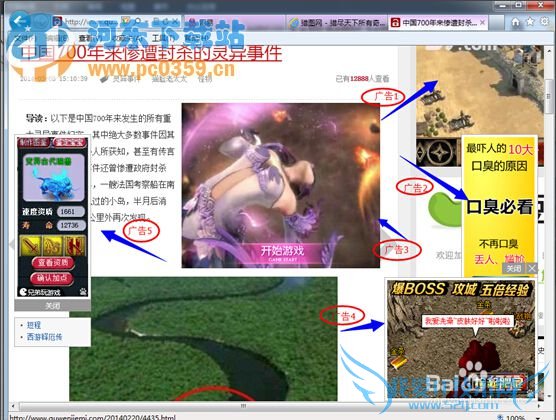 1.在上图中我们看到很多某个网站中包含有大量的广告,这严重影响了用户体验度,下面我们就通过QQ电脑关键将其过滤掉。