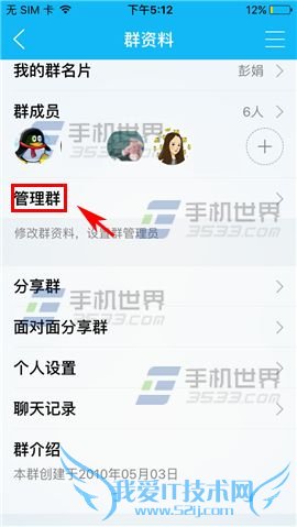 2)进入聊天页面后点击右上角【双人头像】,接着点击【管理群】。(如下图)