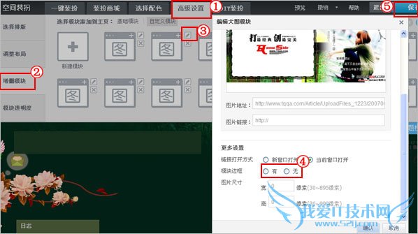 2、点击“高级设置”=》“增删模块”,找到您要调整的模块后,点击右上角的编辑按钮,在编辑框中拉到底端的更多设置,在模块边框中选择无即可完成操作。