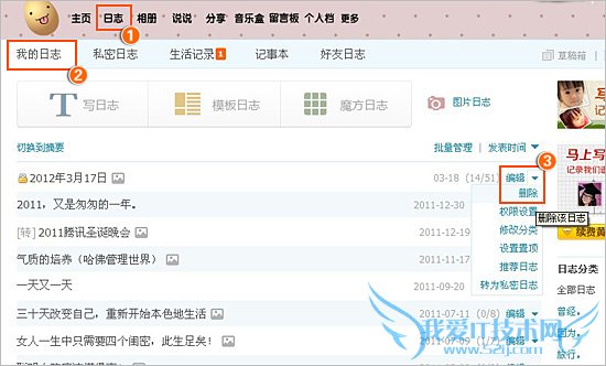 二、如果空间中多出很多非自己本人所写的内容,请按以下方法进行清理(一般垃圾广告所存在的模块有如下地方:
