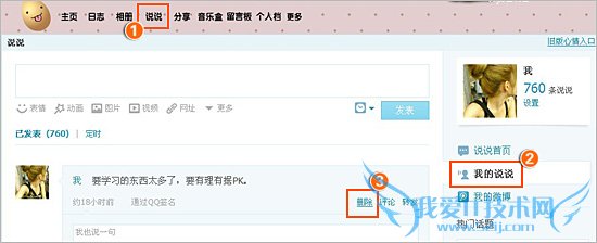 清理步骤 :登录到QQ空间,点击导航上的“说说”