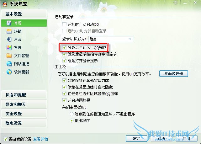 然后把登录后自行运行QQ宠物前面的勾去掉,点确定就OK了。