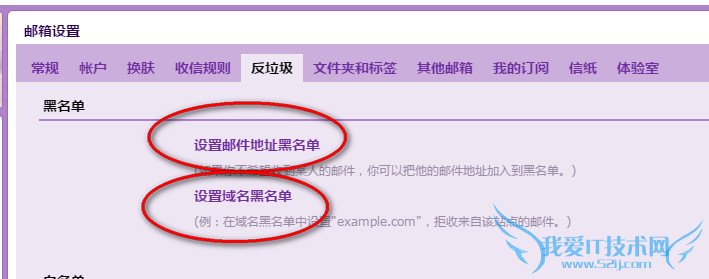 2、在邮箱设置中选择“反垃圾”选择“黑名单”,点击“设置邮件地址黑名单”