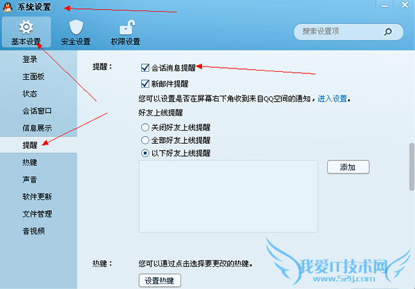 依次点击系统设置——基本设置——提醒——会话信息提醒即可。