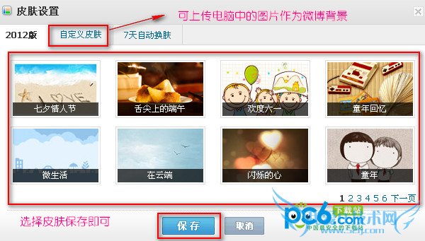 首先打开微博,然后点最面一排小喇叭右边你的微博名称的倒三角形,就会看到换肤,点击换肤就会弹出皮肤设置框,然后选择你喜欢的皮肤最后保存即可。如果系统中的可供选择的皮肤太少的话可以选择自定义皮肤。