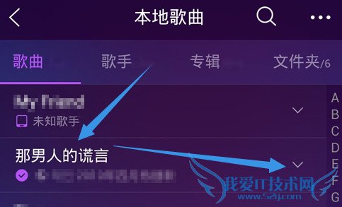 点击歌曲右边的小三角打开选项