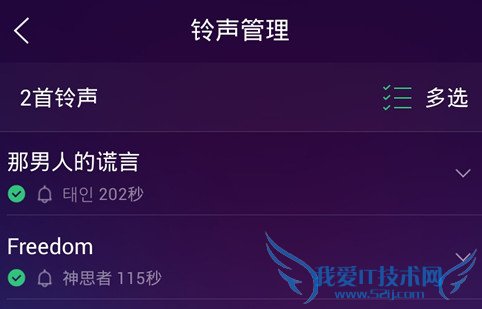 歌曲截取成功保存到铃声管理目录下面,已设置好的铃声到时可以在这里进行快速切换而不需要重新截取。
