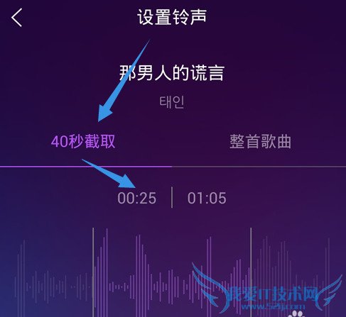 然后QQ音乐就会对你的这首歌曲进行一个40秒的截取,作为你的手机铃声