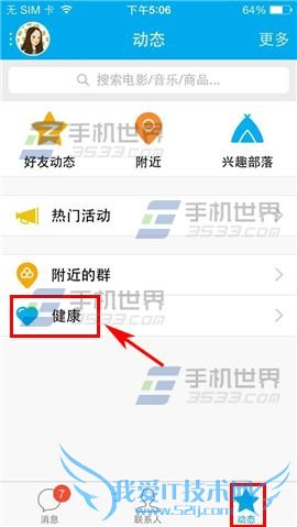 1)打开手机QQ进入应用后点击【动态】,接着点击【健康】。接着点击【向好友下战书】。(如下图)