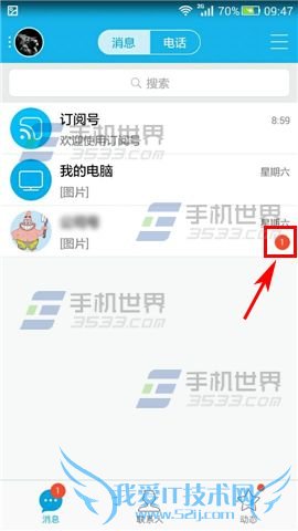 1)打开手机QQ,在【消息】页面找到要标记未读的消息,向左滑动;(如下图)