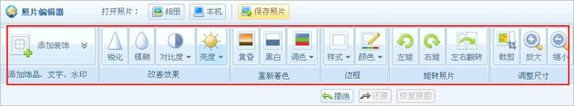 调整尺寸:包括放大、缩小、裁剪等三个功能,大小怎么适合就怎么弄,不小心点错了还可以撤消;