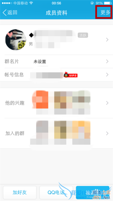 3、成员资料内点击右上角的“更多”,进入到更多设置;