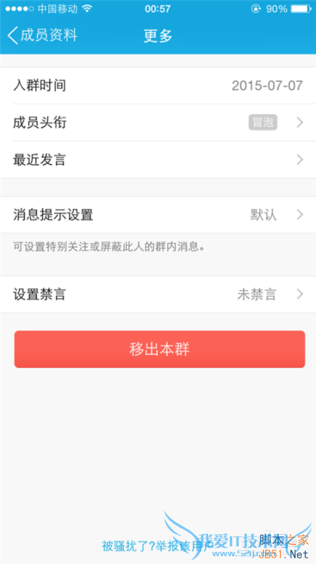 2、找到需设置禁言的成员,点击头像,进入到成员资料界面;