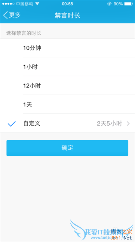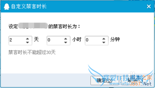 5、设置禁言时长,同样也可以自定义禁言时长,然后点击确定,就完了禁言。