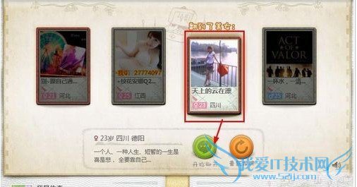 【9】来到选择界面,你可以翻看图中的四个卡片,每个卡片后面都是一个人,如果你觉得这几个卡片都没有好感,你可以点击重新发牌