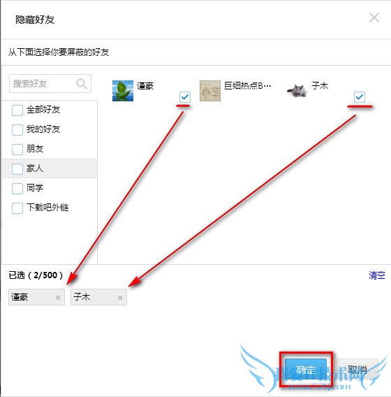 4:找到你想屏蔽的好友QQ,鼠标移到头像处,就有一个选择是否打勾。