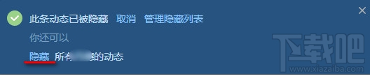 9:这里的隐藏只是该条动态,再次点击“隐藏 所以XXX的动态”,就可以全部隐藏了。